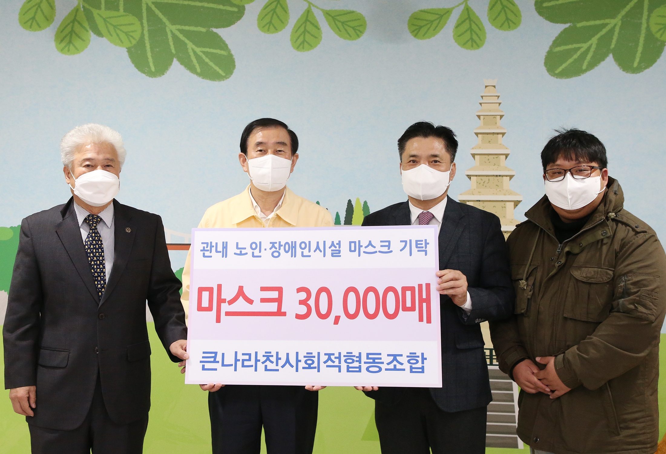 큰나라찬사회적협동조합 "코로나19 감염에 취약한 노인.장애인시설에 마스크3만매 기탁"